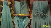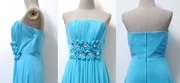 ชุดราตรียาวเกาะอกสีฟ้าสดใส จับจีบสวยๆ พร้อม detail เป็นดอกไม้ประดับcrystal บริเวณเอวด้านหน้า กระโปรงยาวทิ้งตัวสวย มีซับในตลอดตัว