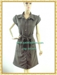 ชุดเดรสน้ำตาลปกเชิ๊ตแขนเบิ้ลกระดุมหน้าสไตล์สปอร์ตมีกระเป๋าล้วงซ้ายขวา