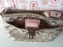 กระเป๋าสะพาย COACH POPPY SWINGPACK KHAKI-PINK CROSSBODY 47018 ตัวกระเป๋าสี khaki pink ลายซีโลโก้สีครีมรุ่นใหม่ เน้นขอบสีชมพูสวยหวานค่ะ สายสะพายทำจากผ้าสามารถปรับความยาวได้ ตัวคล้องเปิดปิดแบบกดล็อคสีเงินค่ะ ด้านหน้ามีช่องใส่ของแบบเปิดแยก พร้อมช่องกลางใส่ของเปิดปิดด้วยซิป ขนาดประมาณ 9 1/4" (L) x 6 1/2" (H) x 2 3/4" (W)นิ้ว ราคา 3900 บาท มี Care Card มาด้วยจ้า