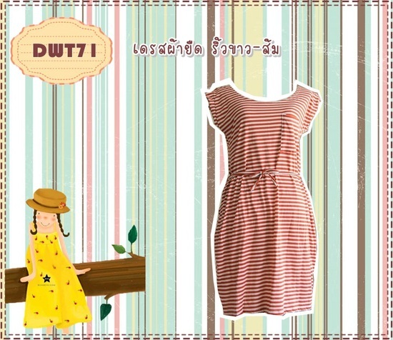 เดรสผ้ายืดริ้วขาว-ส้ม : Winteera