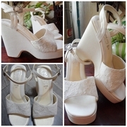 รองเท้าเจ้าสาวส้นตึก รองเท้าเจ้าสาวงานเช้า รองเท้าเจ้าสาวงานเย็น มือ2สภาพมือ1 ใหม่มากมาก