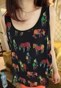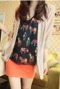 เสื้อแฟชั่นเกาหลี เก๋ๆลายม้าลาย แวกหลังผูกริบบิ้นโบว์