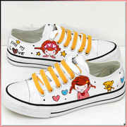 จำหน่ายรองเท้าผ้าใบ รองเท้าเพ้นท์มือ รองเท้า Graffiti สไตล์เกาหลี