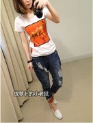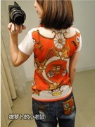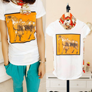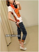 เสื้อยืดแขนสั้น พร้อม ผ้าพันคอลาย พิมพ์ลาย สีส้ม สดใส ส่งฟรี