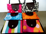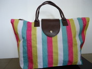 กระเป๋าผ้าลายดอกไม้สีสดใส เหมาะกับ Summer นี้มากๆคะ เป็นแบบหูหิ้วหนังแบบหูสั้นคะ (ขนาดเท่ากับ Longchamp size M หูสั้นเลยคะ)