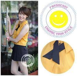 detail : เสื้อปกเชิ้ดแขนกุดเว้าเข้าสีเหลืองมัสตาร์ด พร้อมด้วยคอซองสีดำ ถอดแยกชิ้นได้นะคะ