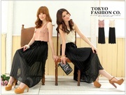 เสื้อผ้าแฟชั่นนำเข้า Mix dress ผ้ายืด จั้มใต้อก เย็บย่นที่หัวไหล่ สีเขียวน้ำทะเล *มีสายผูกใต้อก