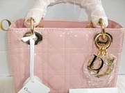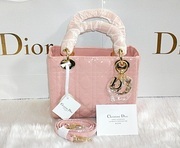 - Dior Lady 8 นิ้ว หนังแก้ว อะหลั่ยทองเงาวิ้ง สีชมพู