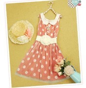 ชุดเดรสแขนกุดตาข่ายโพลีเอสเตอร์ สีชมพู ขนาด:ฟรี
