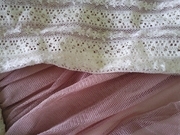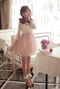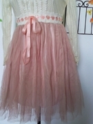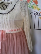เดรสผ้าลูกไม้ แขนยาว กระโปรงสีชมพูหวาน แต่งริบบิ้นที่เอว สไตล์เกาหลี