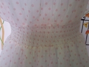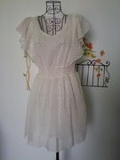 เดรสชีฟองสีขาวลายจุดชมพู แขนระบาย