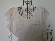 เดรสชีฟองสีขาวลายจุดชมพู แขนระบาย ราคา 718 บ. ฟรีค่าส่งค่ะ