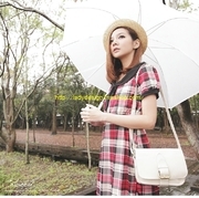เดรสแฟชันลายสก็อตตรงคอเสื้อเป็นคอบัวผูกเป็นโบว์