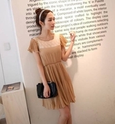 เดรสกระโปรงสั้นสั้นสไตล์เกาหลี สีน้ำตาลจีบพลีทที่แขนและกระโปรง ราคา 786 บ.เป้นสินค้านำเข้าจาก Taobao China