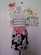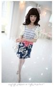 เดรสเกาหลีน่ารัก พิมพ์ลาย แขนระบาย