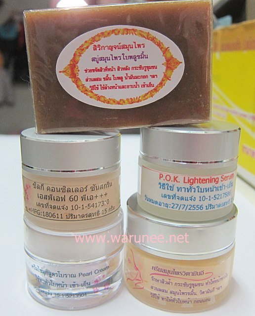 ครีมกันแดดใยไหม 15 กรัม, เซรั่มหน้าใสพีโอเค 15 กรัม, สบู่ใบพลู 90 กรัม