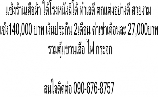 เซ้ง140,000 บาท เงินประกัน 2เดือน ค่าเช่าเดือนละ 27,000บาท