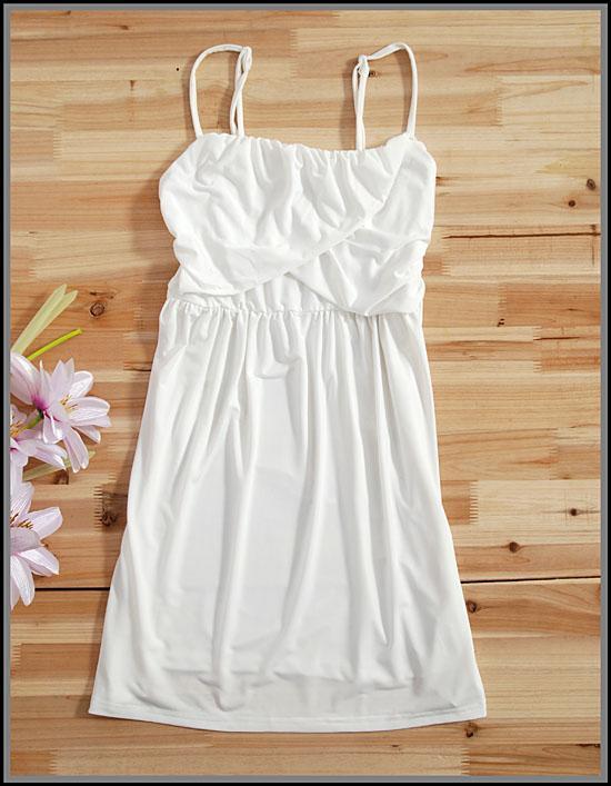 Yi Qian เดรสสายเดี่ยวผ้าโพลีสีขาว ใส่เที่ยวทะเล