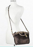 A darling mini satchel covered in shimmery microsequins: leather-trimmed and softly pleated, this charming day-to-evening design has a well-organized, surprisingly spacious interior and a long strap for crossbody wear.