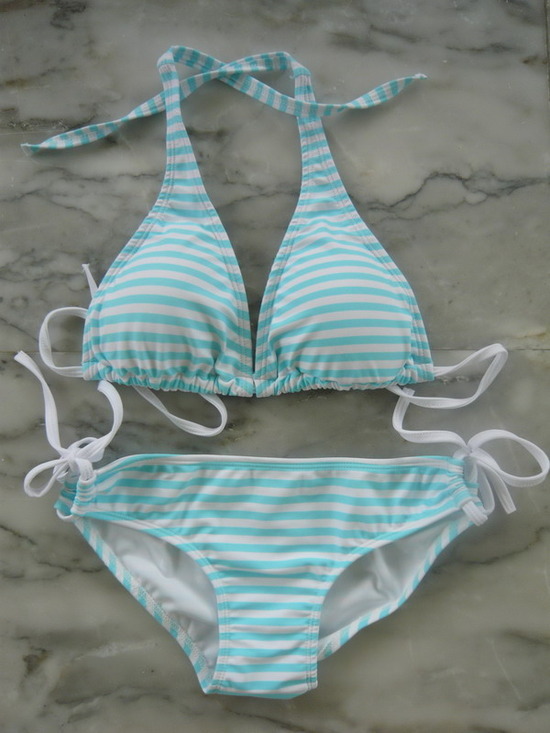 ขาย บิกินี่ ผูกคอ ลายทางขาว-ฟ้า น่ารักๆ