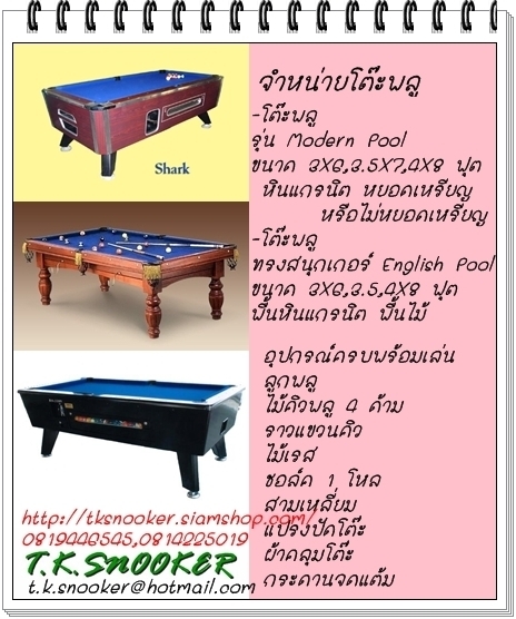 แวะชมสินค้าและดูรายละเอียดได้ที่ http://tksnooker.siamshop.com/