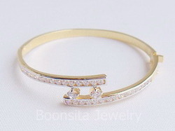 กำไลข้อมือเพชร CZ กำไลข้อมือเพชรแถวหนีบเพชรหนามเตย 2 เม็ด สวยสวย เก๋เก๋ น่าใส่มากครับ