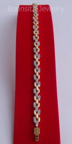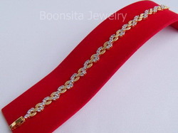 ชิ้นนี้สร้อยข้อมือเพชรเกลียว ดีไซน์แบบเกลียวเพชรสลับกับเกลียวทองชุบสีแบบซาตินตลอดเส้น สวยสวย เก๋เก๋ เพชรเป็นประกาย น่าใส่มากครับ