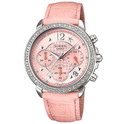 Casio Sheen Chronograph รุ่น SHN-5015L-4ADR นาฬิกาข้อมือสำหรับผู้หญิง ขอบหน้าปัดล้อมรอบคริสตัล สายหนังสีชมพู ไม่เป็นสนิม หน้าปัดค่อนข้างใหญ่
