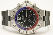 นาฬิกา Bvlgari Diagono Professional GMT Mens Automatic SD40 ขนาด 40มิล หนา11มิล เรือนStainless Steel หน้าปัดดํา กันนํ้า100เมตร สายยาง