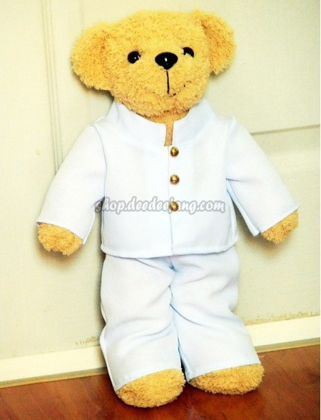 ตุ๊กตาหมีชุดขาว ต้อนรับเทศกาลกินเจ ตุ๊กตาหมีขนหนูสีน้ำตาลอ่อน อยู่ในชุดสีขาวแขนยาวราชประแตน
