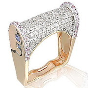 แหวนเงินฝังเพชรczและพลอยแซฟไฟร์sapphire ตัวเรือนเงินแท้ชุบทองชมพูPINK GOLD