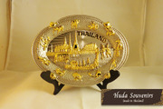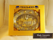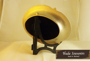 ของแจกลูกค้า จานโชว์ ทรงวงรีสีทอง ตัวสินค้าทำจากโลหะโดยพื้นผิวที่เป็นปุ่มๆนั้นทำให้เกิดธีมที่ให้ความรู้สึกอีกรูปแบบหนึ่งที่มันดูไม่เรียบง่ายและช่วยเสริมเรื่องราวที่เป็นรายละเอียดสีทองของตัวชิ้นงานได้อีกด้วยตัวสินค้ามีลักษณะเป็นวงรี ด้านหลังของสินค้าจะบุกำมะหยี่สีดำเอาไว้และมีขาตั้งให้สำหรับตั้งโชว์ให้ด้วยสินค้าแบบนี้ถ้าตั้งที่ตู้โชว์มันจะดูดีมากค่ะ