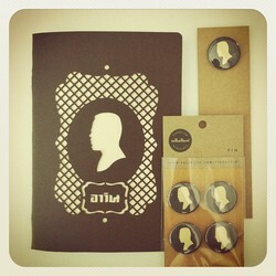 สมุดฉลุลาย หน้าตัวเองเล่มเดียวในโลก!!! เพียงแค่ส่งรูปด้านข้างของตัวเองมาแล้วเราจะทำการพล็อตฉลุออกมาตามรูป พร้อมกับการ์ดใบเล็กติดรูปด้านข้าง และที่คั่นหนังสือติดเข็มกลัดเล็กขนาด 2.5 เซนติเมตร ทั้งหมดเป็นเซตเดียวกัน ราคาเพียง 120 บาท