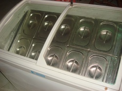 ขายตู้แช่ไอศครีม ยี่ห้อ Sanden Intercool พร้อมชั้นถาดแสตนเลสใส่ไอศครีม จำนวน 10ถาดพร้อมฝาปิด (ตามรูปที่ถ่ายแนบมา) ตู้แช่ใช้มายังไม่ถึงปี