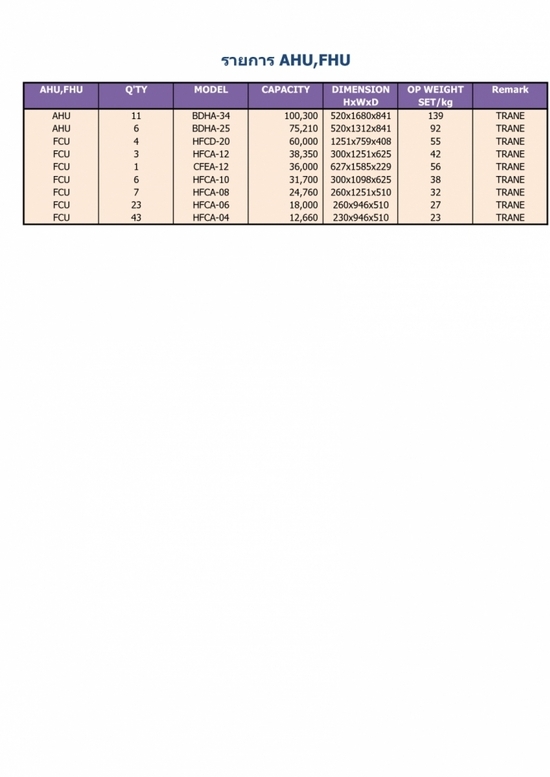 AHU&FCU"TRAIN"อายุการใช้งาน 1 ปี