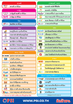 ซึ่งเป็นช่องรายการฟรีทีวีไทย กว่า 40 ช่อง มีหลากหลายรายการ ทั้งช่อง 3, 5, 7, 9, NBT, TPBS, PSI Channel, สบายดี, You Channel, Fan TV, Bang Channel, Green Channel, ACT, MIX, TV Pool และอื่นๆ อีกมากมาย ทั้งช่องภาพยนต์, เพลง, ข่าว, สารคดี, ศาสนา, การ์ตูน รวมถึงช่องรายการจากประเทศเพื่อนบ้าน
