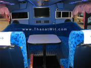 รถ 50 ที่นั่ง ชั้นล่าง เก้าอี้ หันหน้าเข้าหากัน มีโต๊ะกลางขนาดเล็ก
