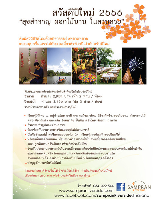สนใจติดต่อ 034-322-544 หรือ http://sampranriverside.com/