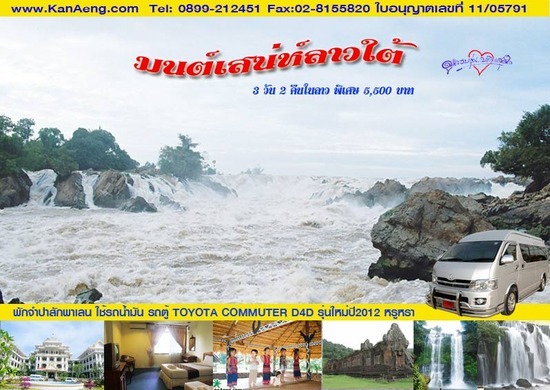 ทัวร์ลาวใต้ ถูกที่สุดแล้ว คลิก..เลย รถตู้ไทยเช่าทั่วไทย และประเทศลาว คนขับนิสัยดี เก่งเส้นทาง โทร..เลย