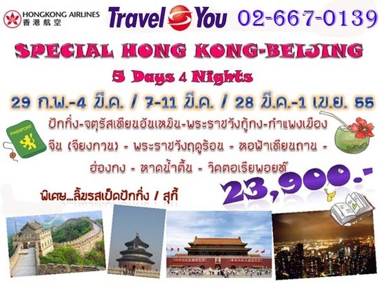 ทัวร์ฮ่องกง-ปักกิ่ง 5วัน 4 คืน เฉพาะเดือนมี.ค.-เม.ย. 55 เท่านั้น กับ ทราเวิล ยู 02-6670139