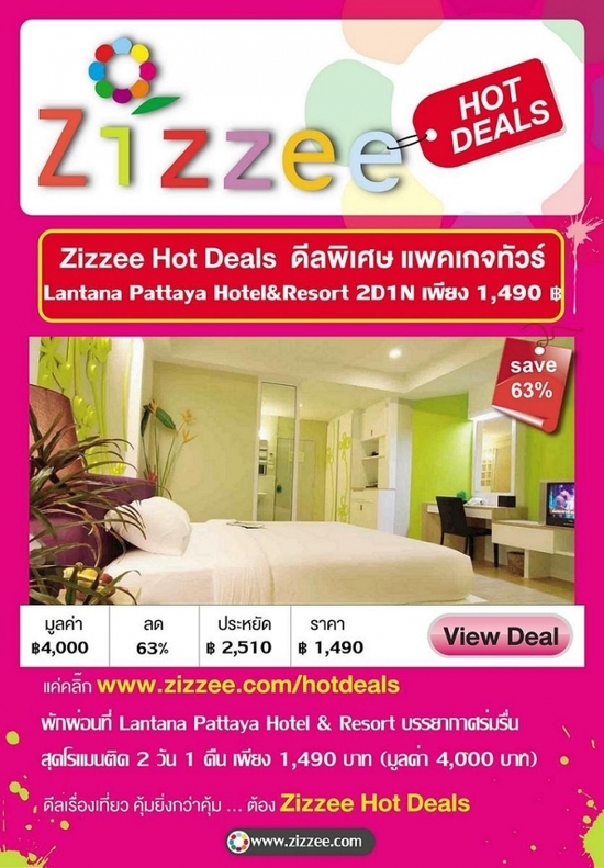 พักผ่อนที่ Lantana Pattaya Hotel & Resort บรรยากาศร่มรื่น สุดโรแมนติค 2 วัน 1 คืน เพียง 1,490 บาท (ปกติมูลค่า 4,000 บาท)