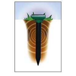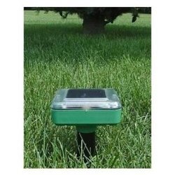 The Sol Mate® Sonic Mole & Gopher Chaser repels unwanted burrowing rodents with the strongest and least expensive power available the sun. Solar-powered and maintenance-free, the Sol Mate Solar Mole & Gopher Chaser uses state-of-the-art technology to repel moles, gophers, voles, shrews and other destructive burrowing rodents. This ingenious device eliminates the use of poisons and traps around your children and pets. Since one full charge yields up to 5 days of trouble-free power, the unit is capable of operating even in unfavorable weather without interruption. The solar panel is embedded in a watertight housing with a unique mow-over design and is constructed of strong ABS material with its discreet green color fits into any environment. The Sol Mate Solar Mole & Gopher Chaser produces a sonic pulse of approximately 400 Hz every 30 seconds and covers an area of approximately 7500 square feet (1/6 acre). Pets won't be affected, but rodents find the noise irritating and eventually move to quieter surroundings
