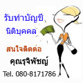 รับทำบัญชี นิติบุคคล ติดต่อ คุณรุจิพัชญ์ 080-8171786