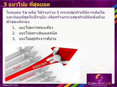จะดีไหม!! ถ้าคุณได้รับรายได้กับงานที่ทำได้จากที่บ้านแบบนี้ ไม่ต้องเดินทางไปอบรมหรือไปสัมมนาให้ยุ่งยาก แถมได้ที่พัก ฟรี!! ในการไปท่องเที่ยวทั้งในไทยและต่างประเทศรวม 17 ประเทศ ได้สิทธิรับโรงแรมที่พัก ฟรี!! 3 คืน 4 วัน ในโรงแรมหรูระดับ 3-5 ดาว และได้รับรายได้เมื่อผ่านกระดานแรก $400 และกระดานที่สอง $8,000 จากการที่คุณทำงานกับ Global Rich Club (GRC) แบบ Part-time (รายได้เสริม) ทิพย์ได้พิสูจน์ทุกอย่างด้วยตัวเอง จึงมั่นใจและอยากที่จะบอกต่อทุกท่าน...