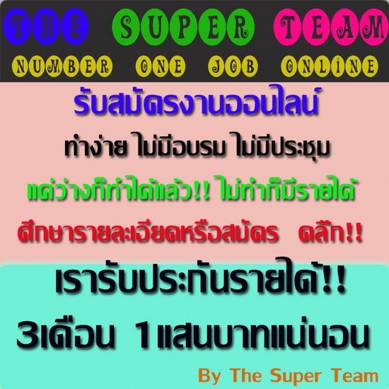มาทำงานร่วมกับเรา ภายในสามเดือนเท่านั้น รายได้ถึงหลักแสนแน่นอน ง่ายๆเพียงเตรียมตัวและพร้อมที่จะเปลียนชีวิตไปพร้อมกับเรา