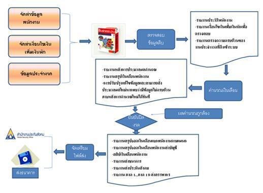 จัดทำรายงานส่งสรรพากร, ประกันสังคม, กองทุนฯ และ จัดเตรียมไฟล์ในการส่งประกันสังคมและธนาคาร