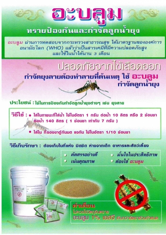 | คำค้น: | ทราบอะเบท | ทรายกำจัดลูกน้ำยุง | ไข้เลือดอก | ทรายกันยุง | | ||