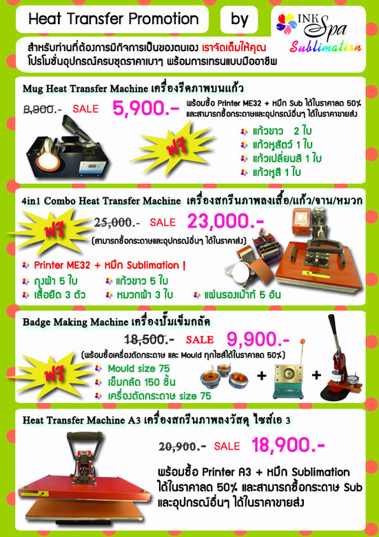 Heat Transfer Promotion - เครื่องรีดภาพลงเสื้อ, เครื่องสกรีนเสื้อ,หมึก sublimation