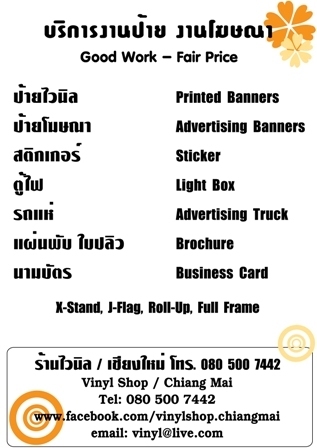 | คำค้น: | vinyl | shop | chiangmai | ไวนิล | เซ้งร้ายป้ายไวนิล | | ||