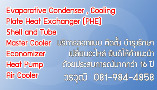 บริการออกแบบ ติดตั้ง ซ่อมบำรุง Evaporative Condenser,Cooling,Master Cooler โดยช่างผู้ชำนาญ และประสบการณ์กาาทำงานกว่า 16 ปี